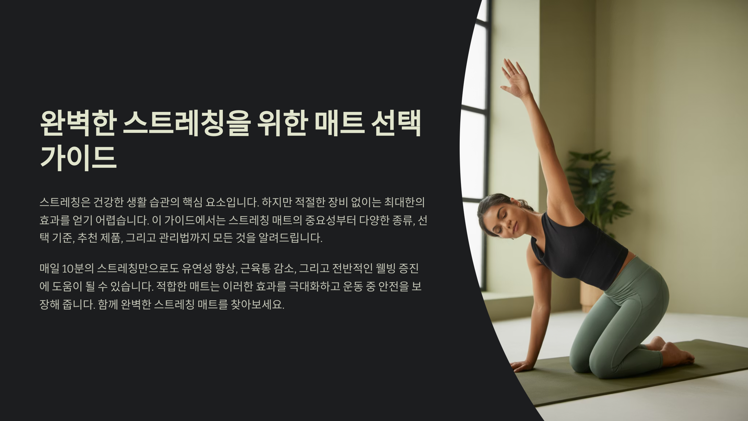 스트레칭은 근육을 이완시키고, 하루의 피로를 푸는 최고의 셀프케어예요. 그런데 바닥에서 그냥 하다 보면 무릎이 아프거나 미끄러져서 다치기 쉬워요. 이때 필요한 게 바로 '스트레칭 매트'랍니다!
